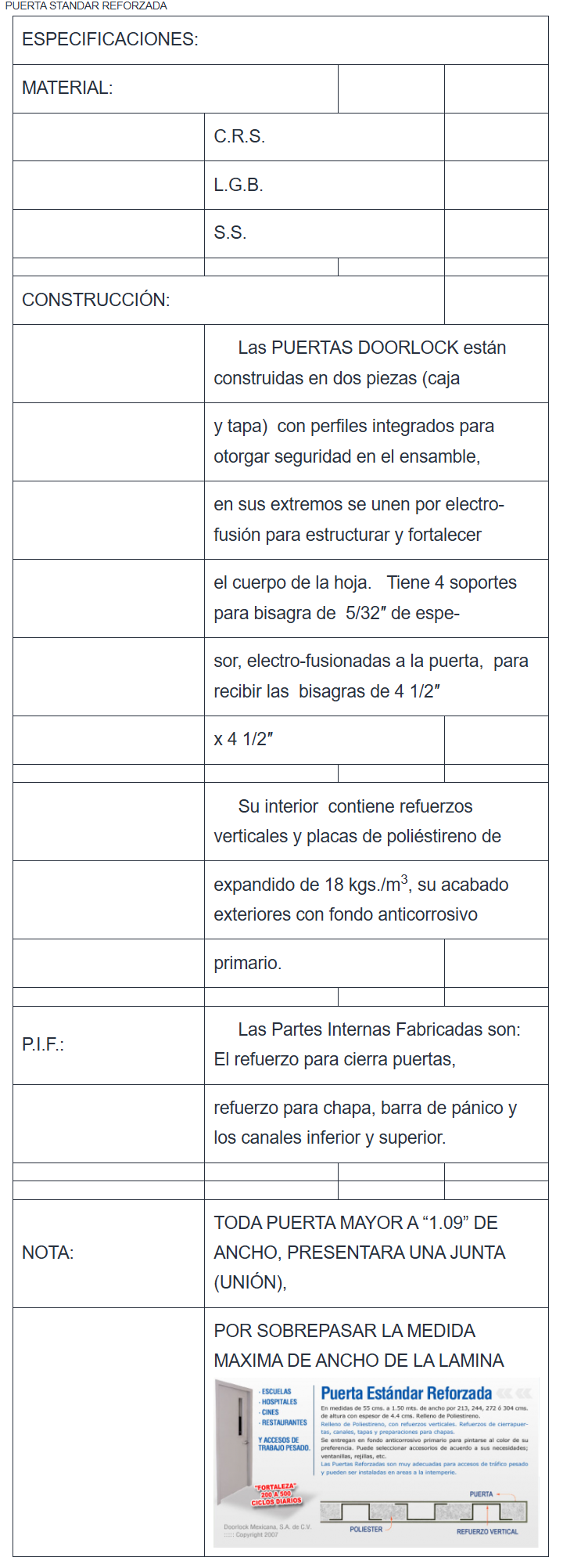 Puertas peatonales contra Incendio, Contra Explosión y Blindadas