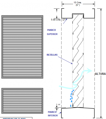 Los FIJOS LOUVER estan constituidos con MARCO y REJILLAS de manera que permite el paso del aire para ventilacion ambiental y cuenta con tela de alambre para proteccion contra insectos, facil instalacion con anclas o expansores